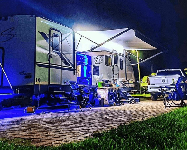 We get a lot of questions about using our LED lighting systems while camping and how they might be used to repel bugs and other critters. First, we want to be clear, we do not market our lighting systems for this purpose. Our LED lighting systems — at least for when it comes to awning and under-glow lighting used on RVs — can provide both functional and accent lighting. Beyond their obvious aesthetic appeal as accent lighting, our under-glow lights for example can be extremely helpful when setting up camp in the dark. Illuminating the under-side of your rig at night allows you to see sewer and water hookups as well as monitor the leveling process. The awning light too is functional as every RV needs a light of some kind on the outside. While our LED systems are designed primarily for illumination and style, there's growing interest in how different light colors might influence the behavior of insects and other creatures. If you're interested in learning more, check out this article here.
